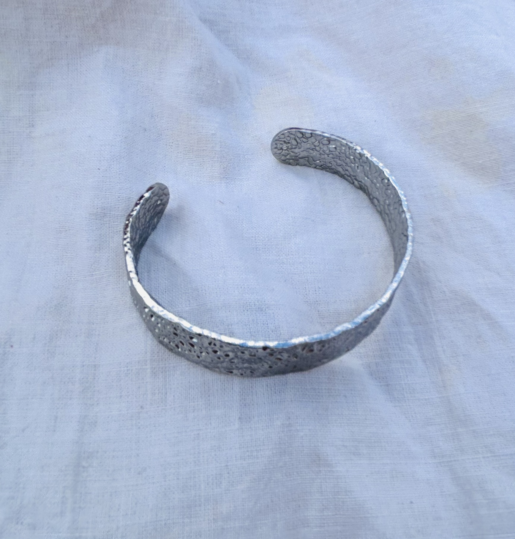 Deze 2 cm brede cuff armband combineert elegantie met karakter. Het subtiele reliëfpatroon vangt het licht op een unieke manier, waardoor een glanzend en dynamisch effect ontstaat. Een veelzijdig sieraad dat zowel solo als in combinatie met andere armbanden prachtig uitkomt.